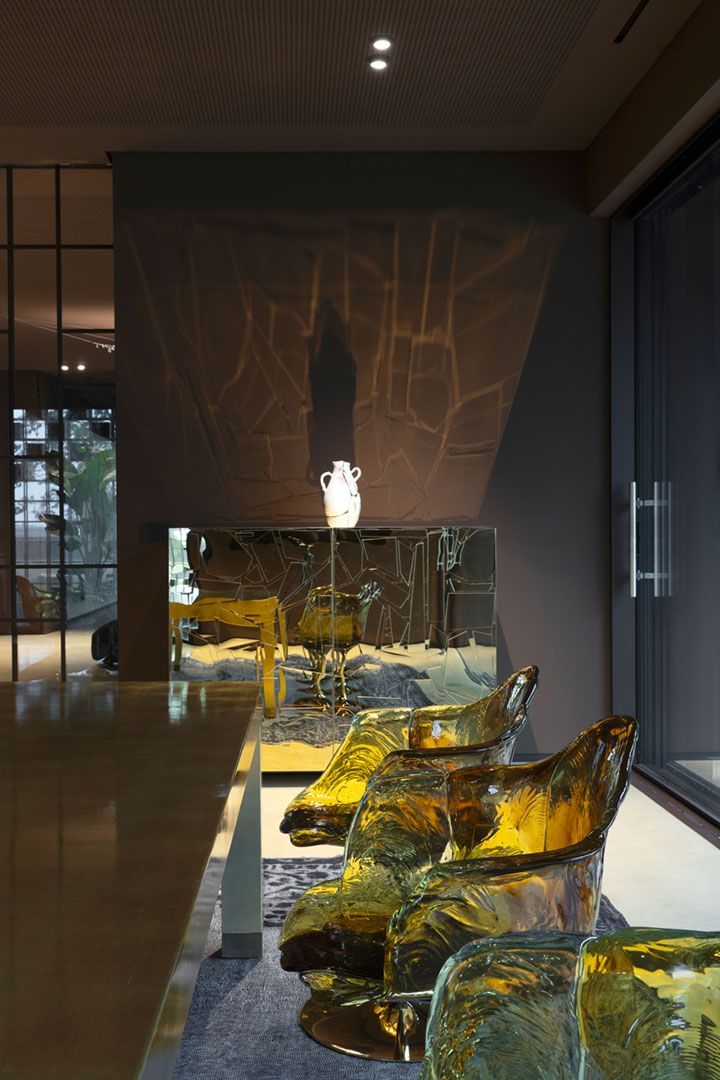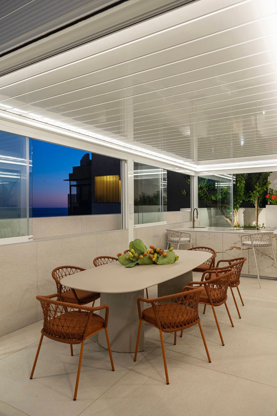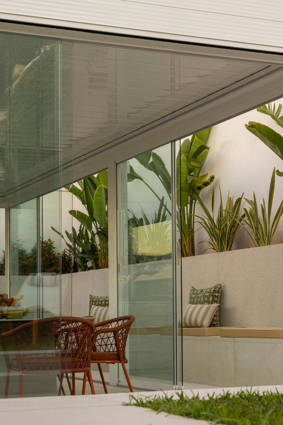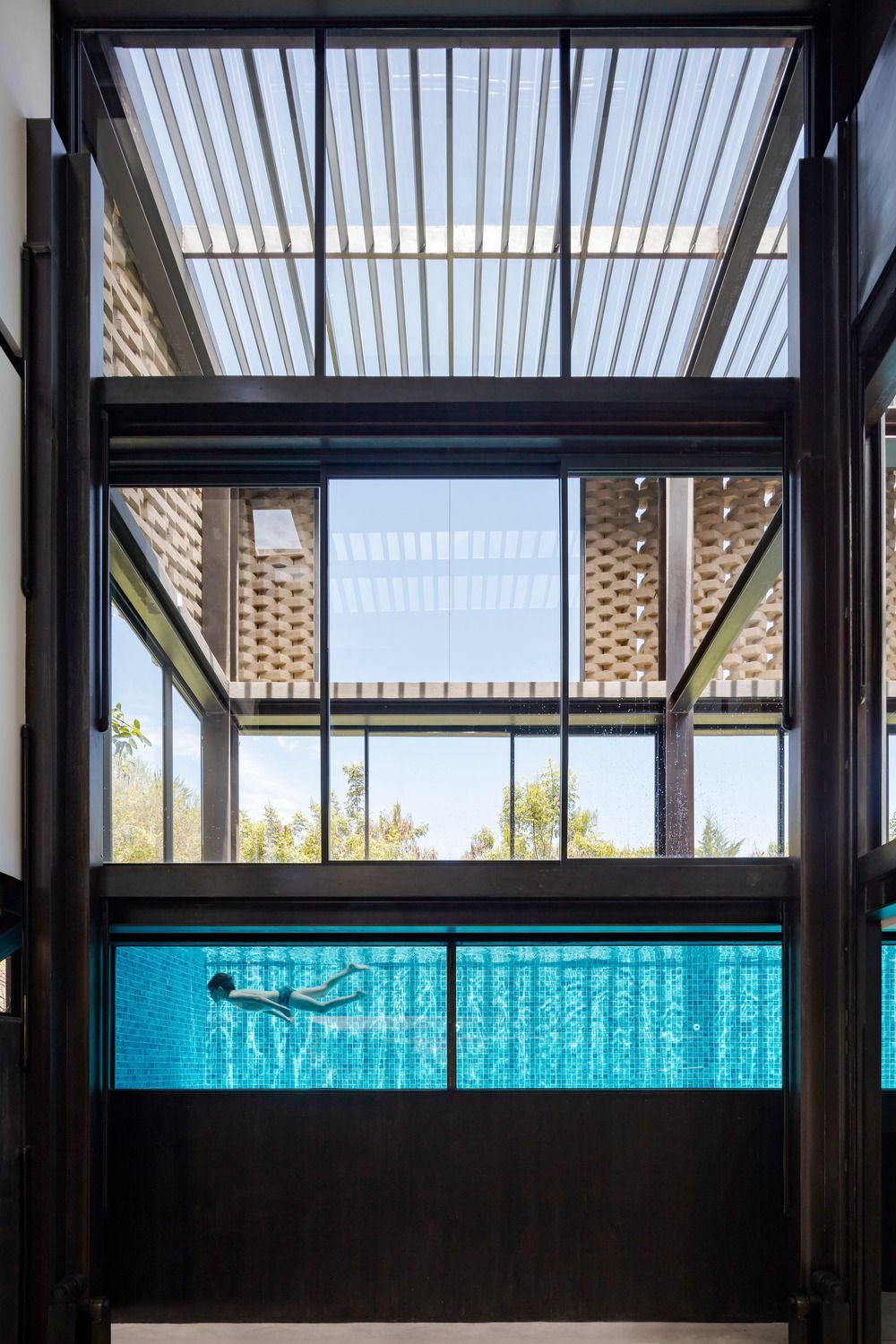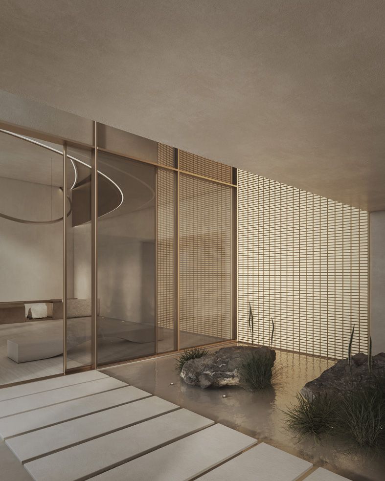 All'interno, un ampio cortile frammentato crea angoli intimi che danno accesso ai 15 appartamenti distribuiti su tre livelli. Ogni livello è caratterizzato da terrazze e percorsi tortuosi che conducono alle aree semi-pubbliche, tra cui la piscina e gli spazi ricreativi.