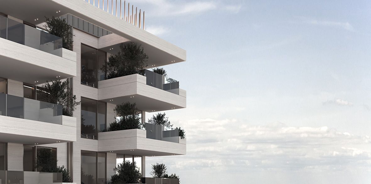 ogni isolato. Le terrazze sono incorniciate da fioriere perimetrali che ricoprono la facciata di verde, dando l'impressione che la natura si riappropri dello spazio.