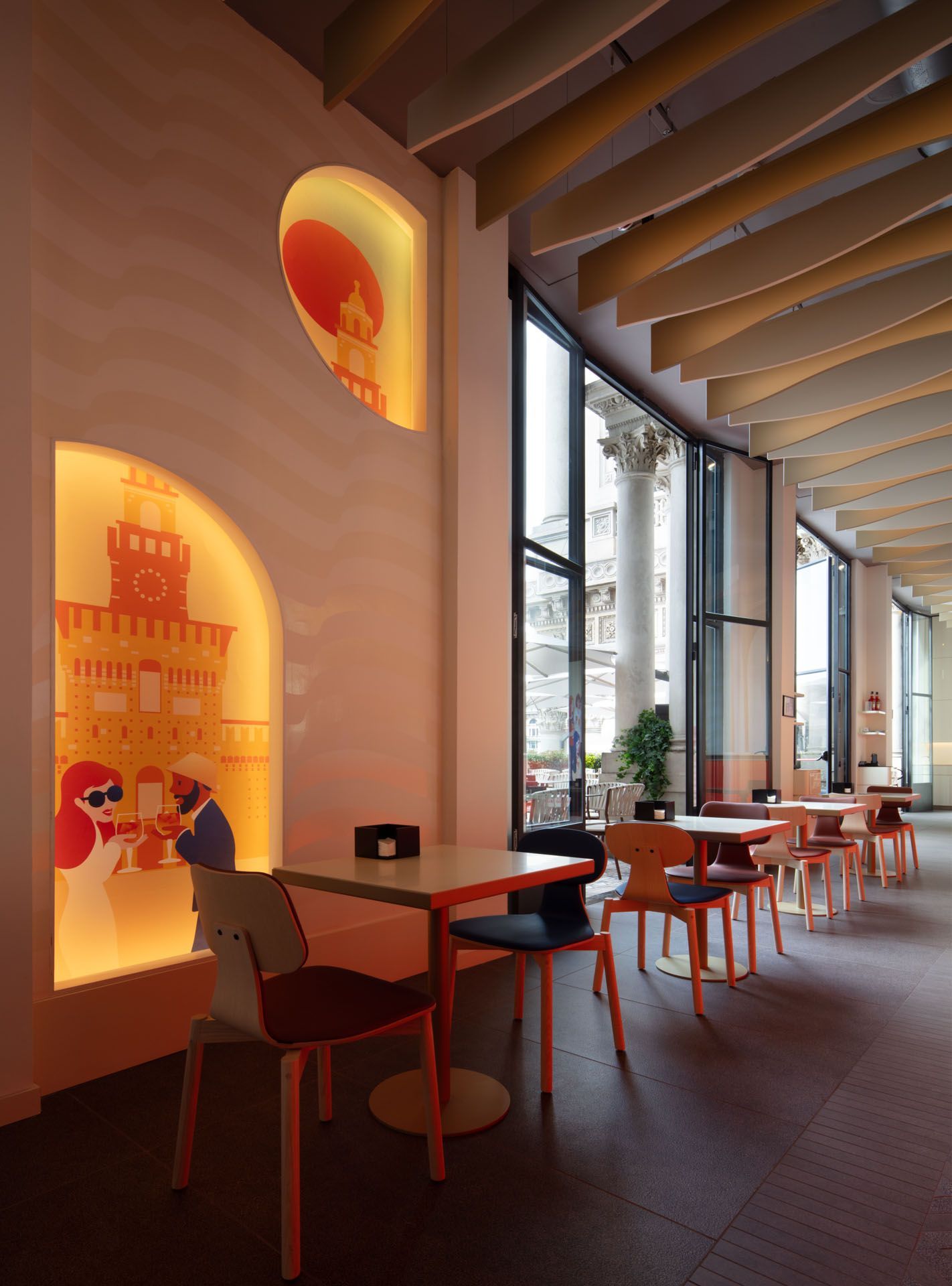 A partire dal 74° piano, il ristorante accoglie gli ospiti nei suoi evocativi interni per far vivere loro un'esperienza unica tra mitologia antica, maestria moderna e cucina cinese e giapponese contemporanea.